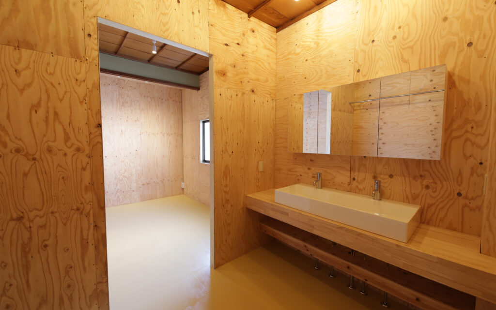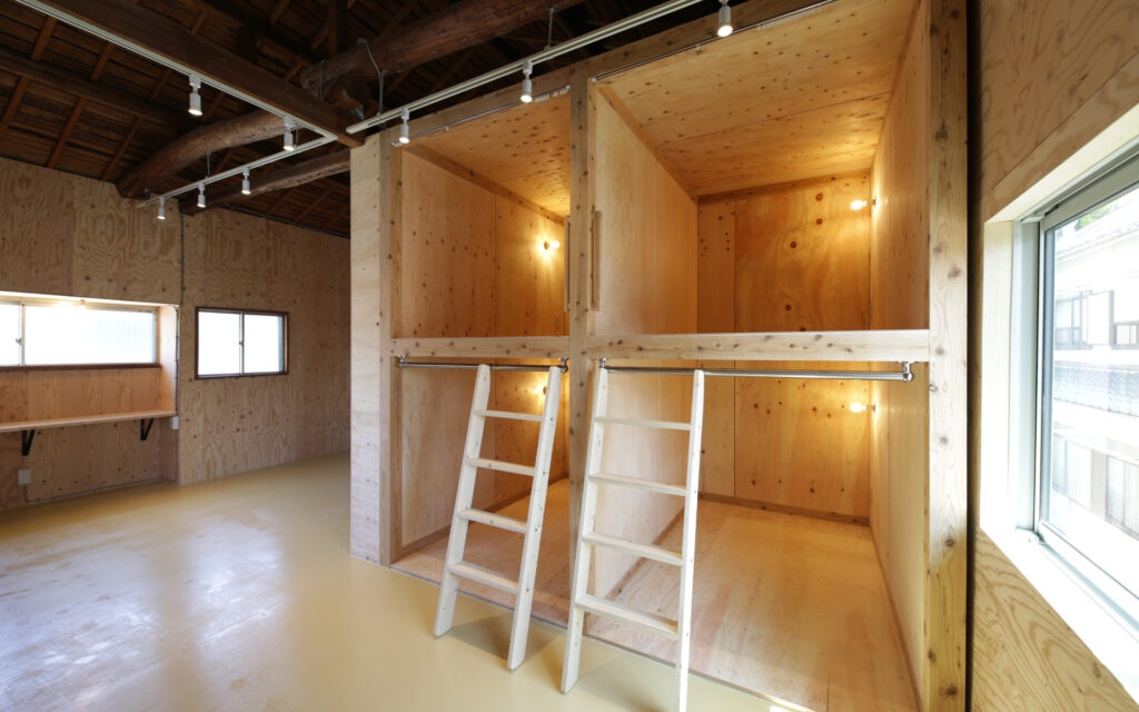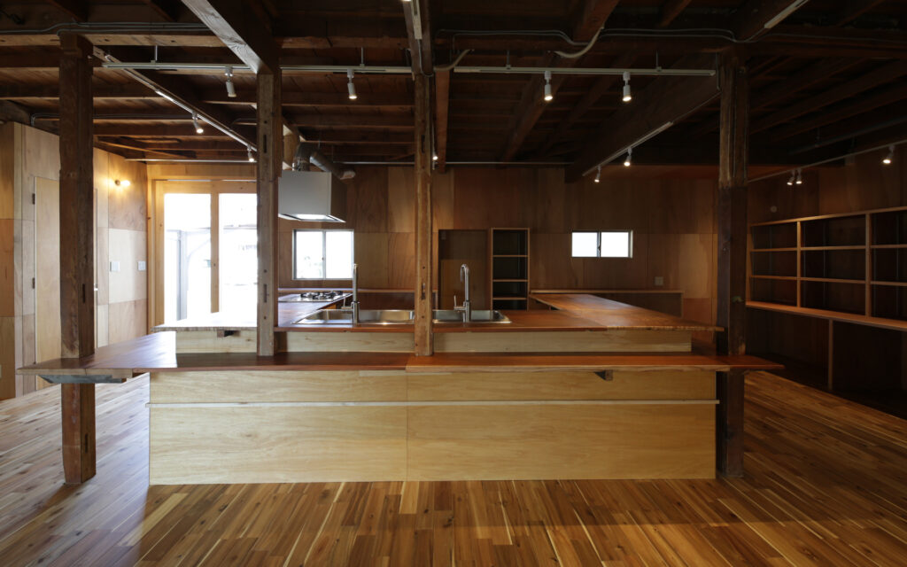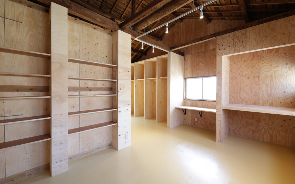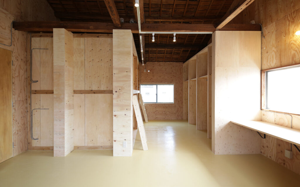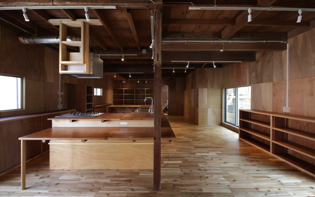 1階のキッチンを核としたフロアをフリースペースとして計画し、用途を限定しないことであらゆる人が自然に立ち寄れる場を設計した。開かれた空間が人と人を引き合わせ、地域に潜む課題を可視化する、その気づきのプロセスそのものを、建築的な仕掛けとして組み込んでいる。医療・福祉への橋渡しや個人の力を引き出す伴走支援など、きめ細やかな関わりを可能にするのも、この「開いた場」があってこそである。「どなたでも食堂」や高齢者受け入れ、トイライブラリーなど、オーナー自身がこの地で積み重ねてきた活動の経験と地域との信頼関係が、空間の設計思想の根幹を支えている。公助に依存するのではなく、それぞれが持つ力を持ち寄り、支え合える地域の仕組みをつくること。その理念を空間に宿し、塩屋から始まるこの場が、やがて近隣地域へと豊かな波紋を広げていくことを設計の目標とした。
